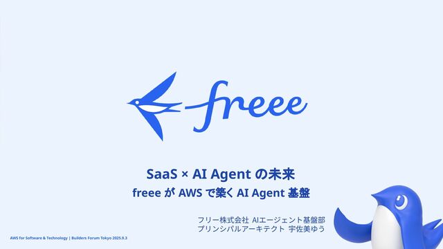 フリー株式会社 AIエージェント基盤部プリンシパルアーキテクト 宇佐美ゆう が、AWS社主催の「AWS for Software & Technology | Builders Forum Tokyo - AI Agent 時代の SaaS」にて登壇した際の資料です。