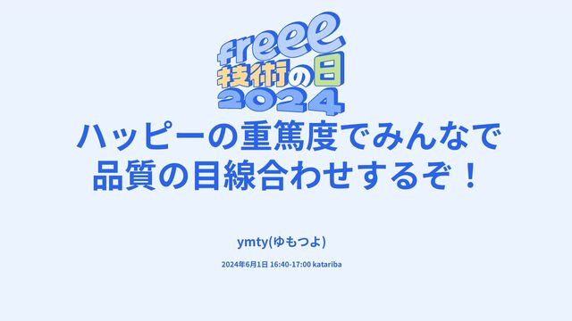 振り返り QA テスト フィードバック フィードバック フィードバック フィードバック QAテストも フィードバック の⼀つ There’s a famous example as per which if a bug is detected in the requirements phase, the cost might be $1. If it is uncovered in the design phase, the cost will increase to $10, $100 during coding, and $1000 during testing. ※ハッピー(freee⽤語) ➢ バグのこと ➢ 修正するとお客さんがハッピーになるのでfreeeではハッピーと呼ぶ もっと速く、 もっと⼿前で!