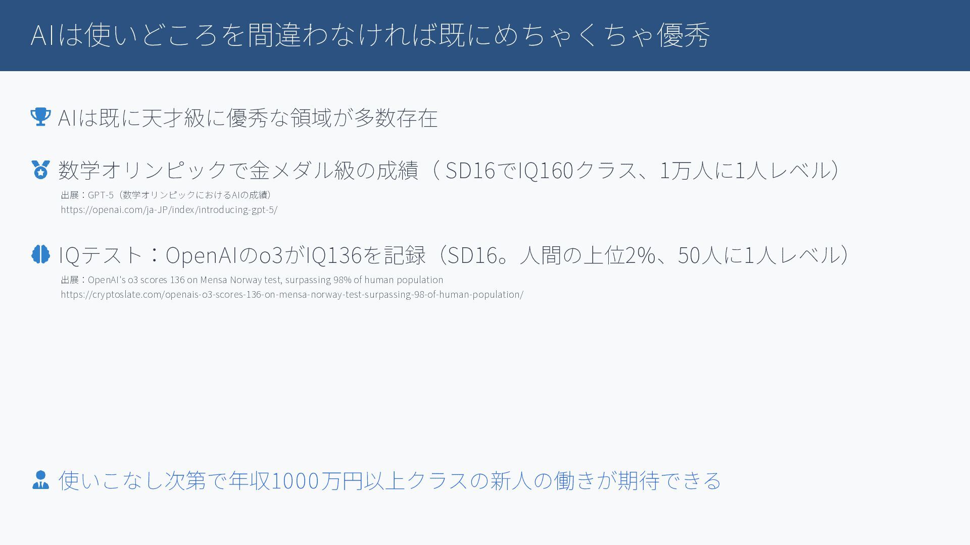 今日段階で既にかなり強力なAIが利用できるようになっているにもかかわらず、未だ散見される「AIはまだまだ使い物にならない論」。