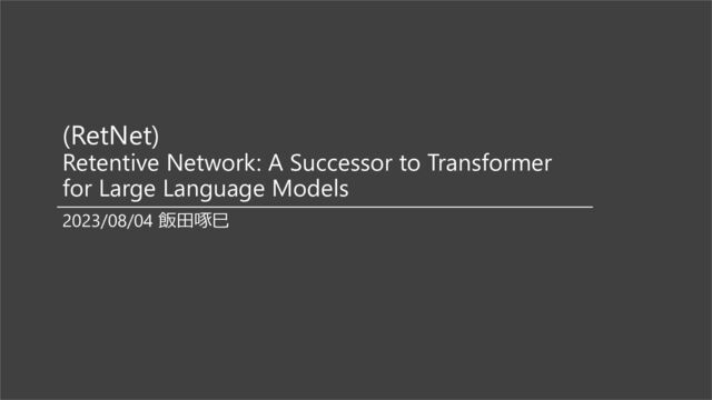 [RetNet] Retentive Network: A Successor to Tran...