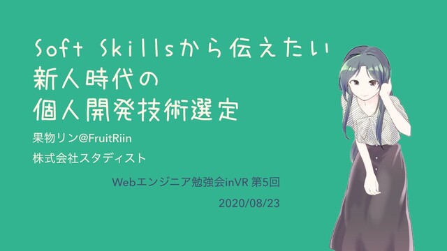 Soft Skillsから伝えたい 新人時代の 個人開発技術選定 ՌϦϯ@FruitRiin גࣜձࣾελσΟετ WebΤϯδχΞษڧձinVR ୈ5ճ 2020/08/23