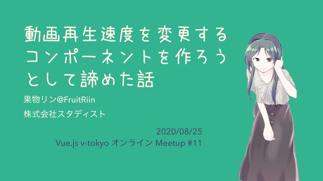 動画再生速度を変更する コンポーネントを作ろう として諦めた話 ՌϦϯ@FruitRiin גࣜձࣾελσΟετ 2020/08/25 Vue.js v-tokyo ΦϯϥΠϯ Meetup