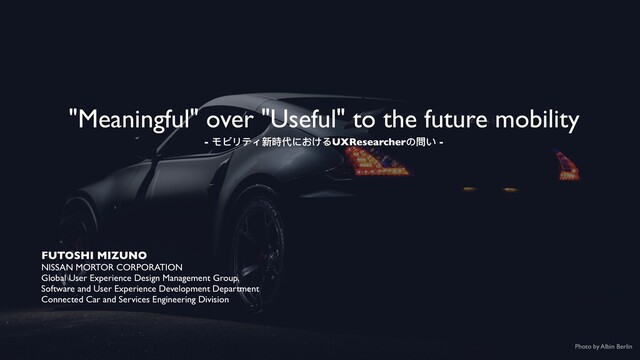 MORTOR CORPORATION Global User Experience Design Management Group, Software and User Experience Development Department Connected Car and Services Engineering Division - モビリティ新時代におけるUXResearcherの問い - Photo by Albin Berlin