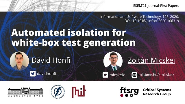 D. Honfi, Z. Micskei. "Automated isolation for white-box test generation", Information and Software Technology 125 (2020), presented at ESEM 2021.