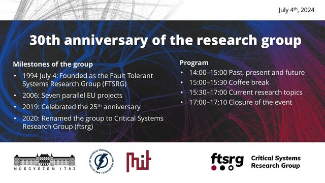 Prof. András Pataricza founded the Fault Tolerant Systems Research Group (ftsrg) in 1994 at the Department of Artificial Intelligence and Systems Engineering (MIT) of BME VIK. This presentation gives an overview of the beginning of the research groups and showcases significant projects and results that serve as the foundation for our current research activities.