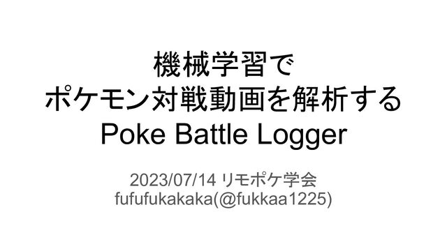 機械学習で ポケモン対戦動画を解析する Poke Battle Logger 2023/07/14 リモポケ学会 fufufukakaka(@fukkaa1225)