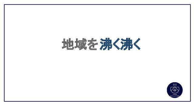 なぜ地域を沸く沸くさせたいの 地域が求めていること 湯どんぶりという リソース みんながやりたいこと 重なる部分をみんなで考えてやっていきたいね!