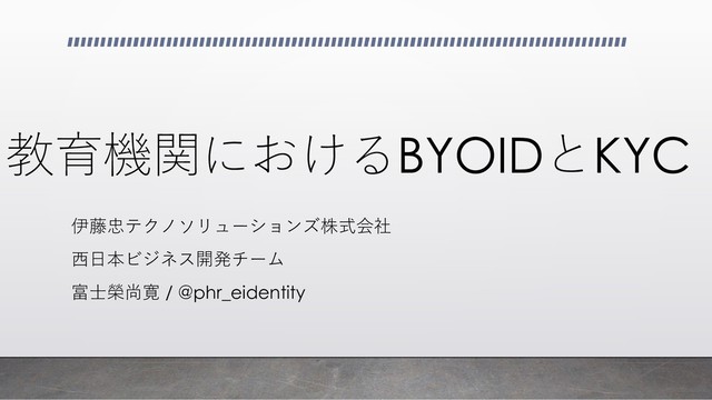 教育機関におけるBYOIDとKYC 伊藤忠テクノソリューションズ株式会社 西日本ビジネス開発チーム 富士榮尚寛 / @phr_eidentity