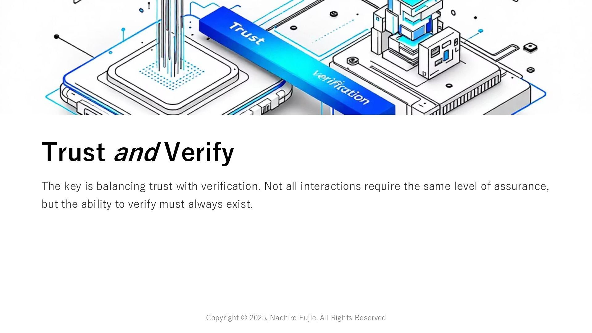 Verify The key is balancing trust with verification. Not all interactions require the same level of assurance, but the ability to verify must always exist.