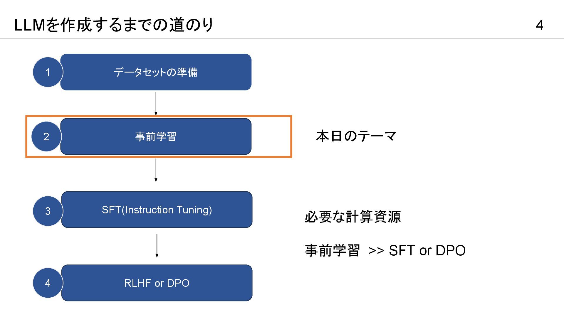 2 3 4 必要な計算資源 事前学習 >> SFT or DPO 本日のテーマ