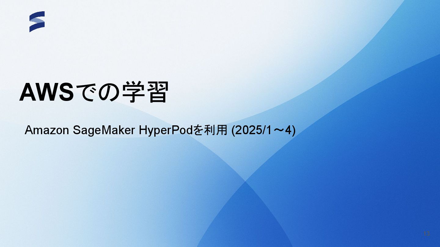 AWSでの学習 Amazon SageMaker HyperPodを利用 (2025/1〜4) 13