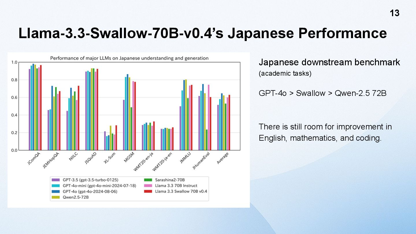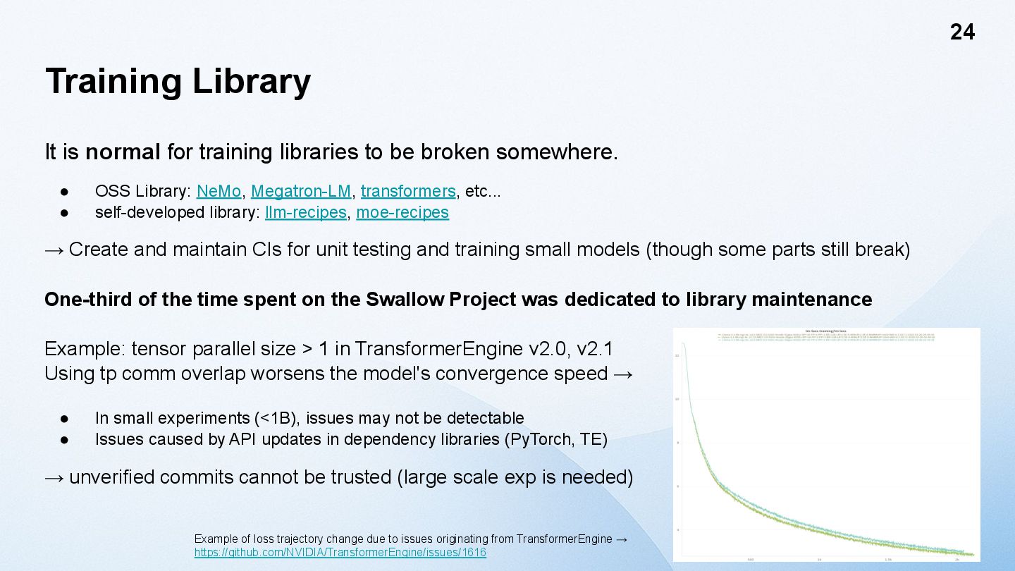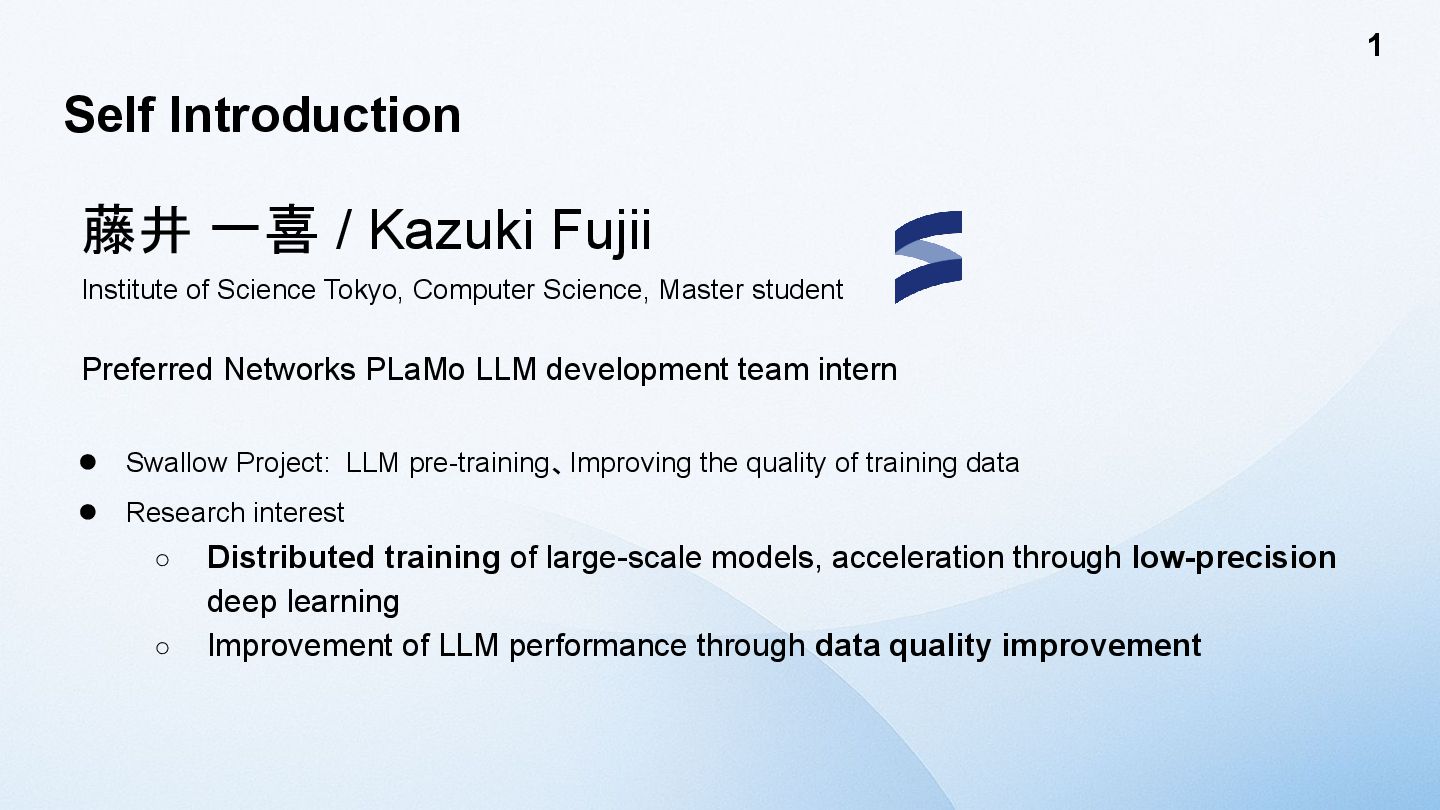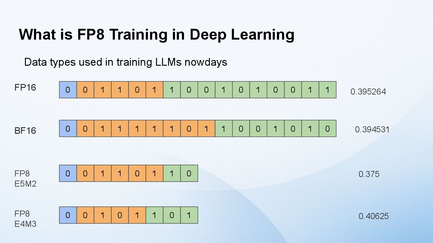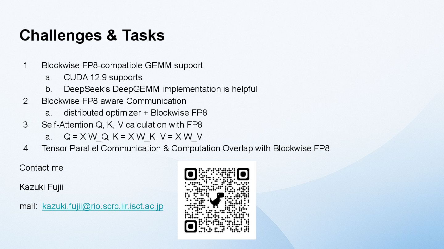 model size increases, the tensor size increases. → activation outliers [Dettmers 2022] One solution is to divide the Tensor into smaller blocks and apply the scaling factor to each block, rather than applying it to the entire Tensor. [MS, AMD, Intel, Meta, NVIDIA, Qualcomm, 2023] NVIDIA Blackwell supports Blockwise FP8 GEMM called MXFP8 (MicroScaling FP8) in hardware. However, Hopper does not have such a function. Furthermore, the fact that performance does not decline when using MXFP8 for training LLMs has only been verified for application to GEMM in the Linear layer. [GTC25] Activation values plot (8B)
