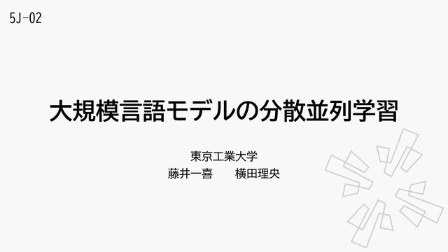 大規模言語モデルの分散並列学習 東京工業大学 藤井一喜 横田理央 5J-02