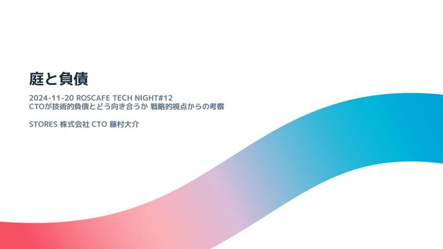 2024-11-20 ROSCAFE TECH NIGHT#12 CTOが技術的負債とどう向き合うか 戦略的視点からの考察 STORES 株式会社 CTO 藤村大介
