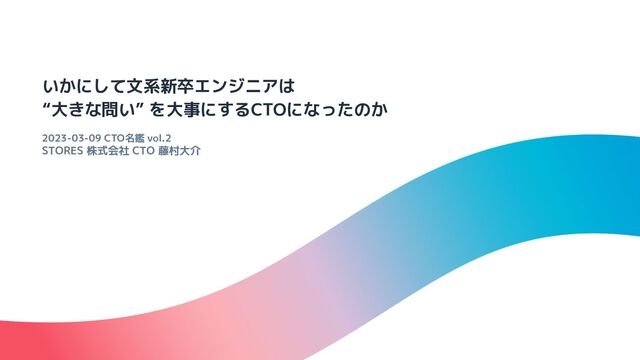 2023-03-09 CTO名鑑 vol.2 STORES 株式会社 CTO 藤村大介 いかにして文系新卒エンジニアは “大きな問い” を大事にするCTOになったのか