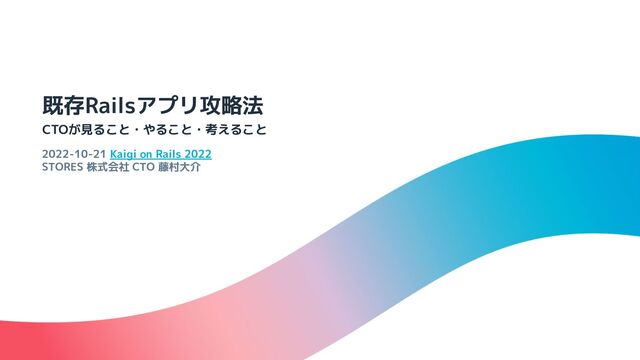 既存Railsアプリ攻略法 CTOが見ること・やること・考えること あるいはスタートアップPMI戦記 Rails編 ということではじまり! 2022-10-21 Kaigi on Rails 2022