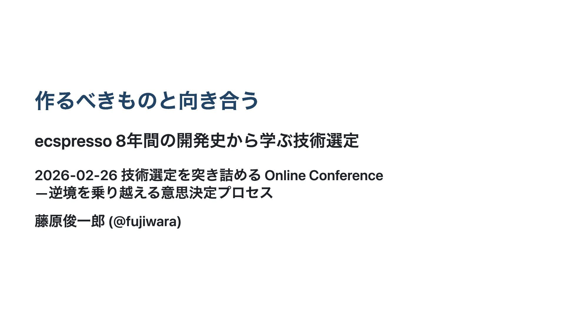 作るべきものと向き合う ecspresso 8年間の開発史から学ぶ技術選定 2026-02-26 技術選定を突き詰める Online Conference ― 逆境を乗り越える意思決定プロセス 藤原俊一郎