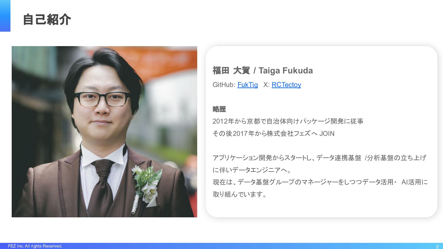 FEZ Inc. All rights Reserved. 2 自己紹介 福田 大賀 /