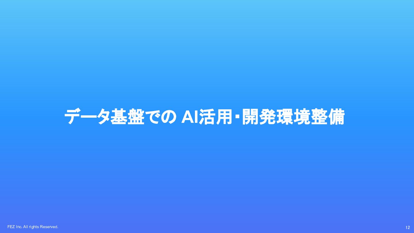 FEZ Inc. All rights Reserved. 12 データ基盤での AI活用・開発環境整備