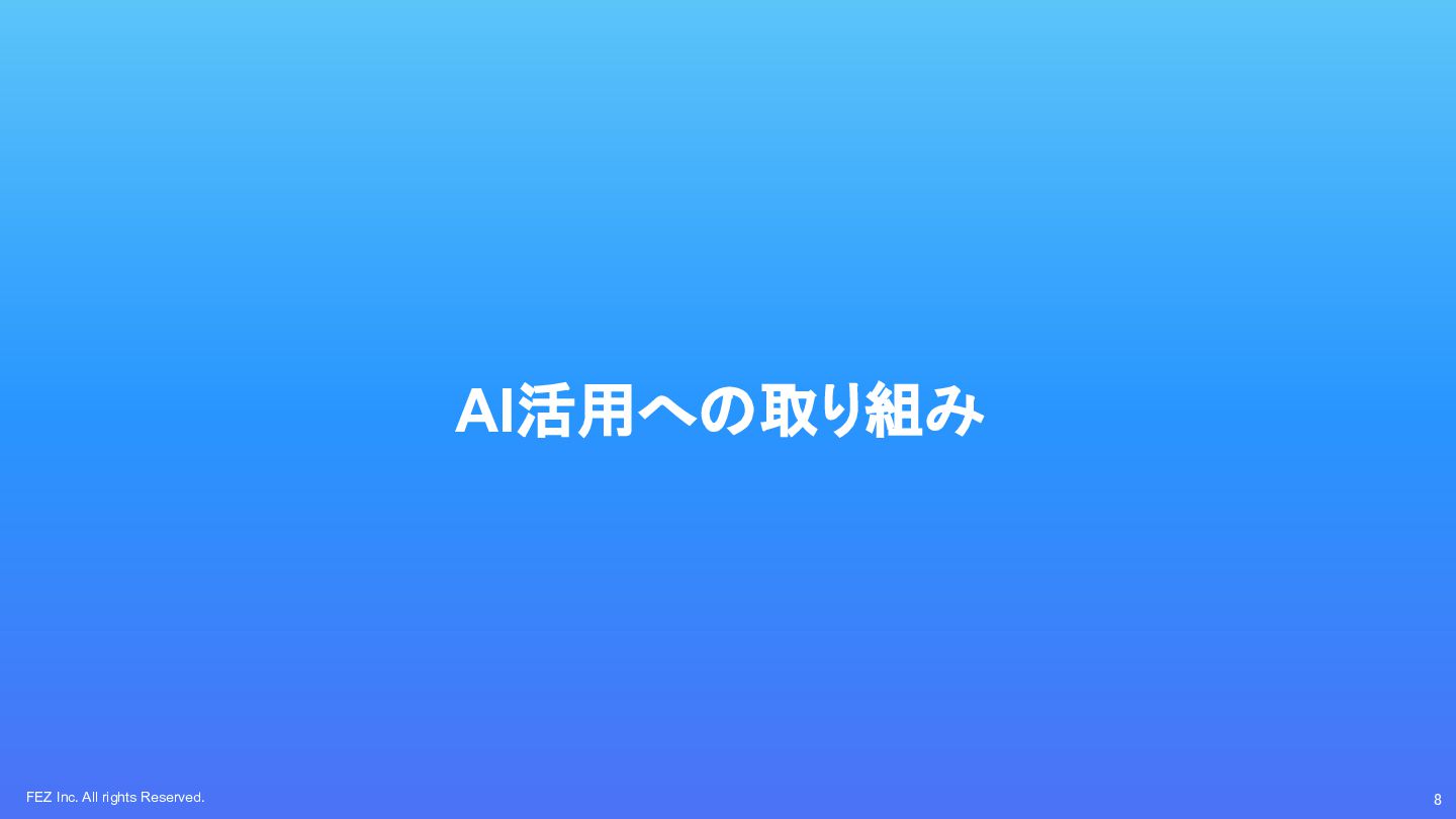 FEZ Inc. All rights Reserved. 8 AI活用への取り組み