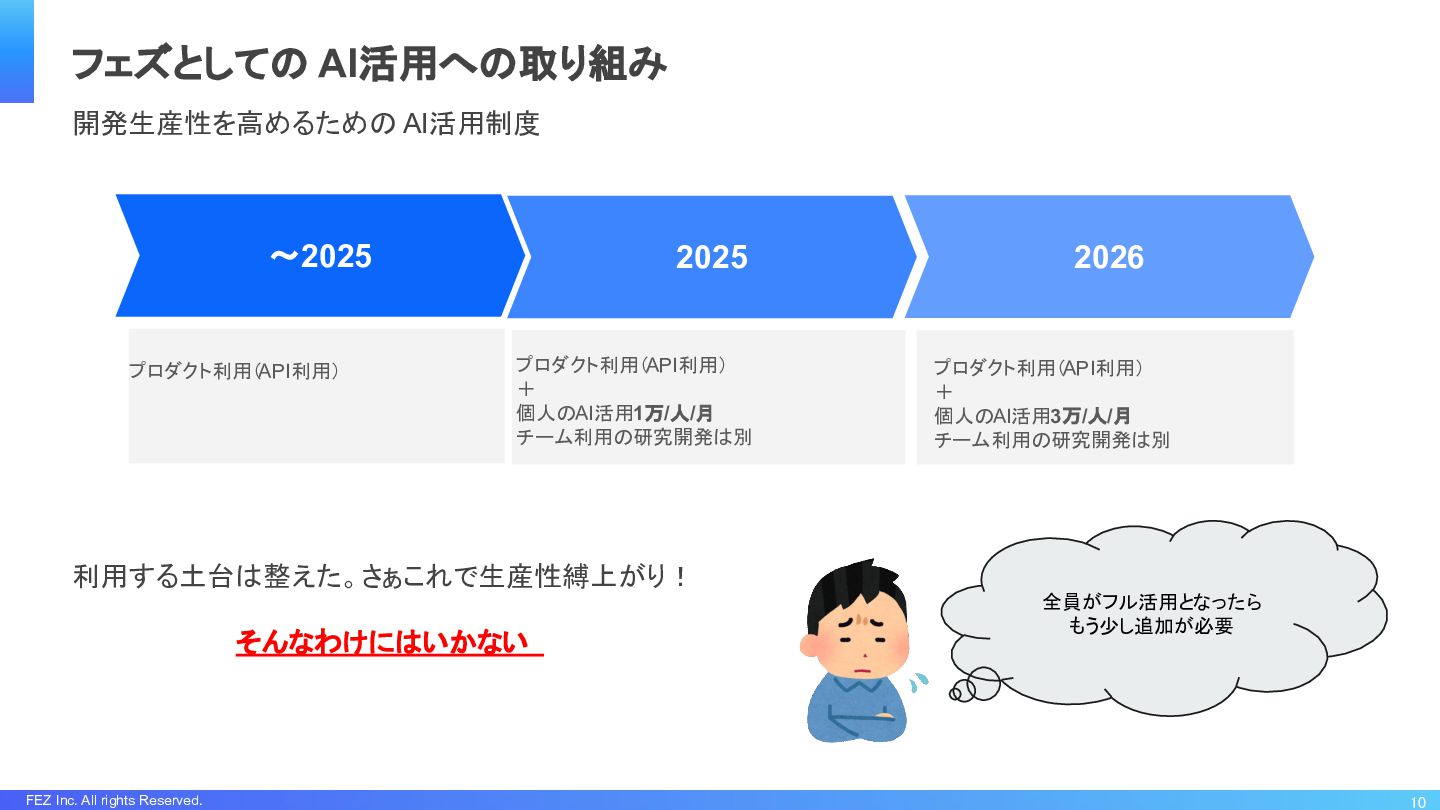 FEZ Inc. All rights Reserved. 10 フェズとしての AI活用への取り組み 開発生産性を高めるための AI活用制度