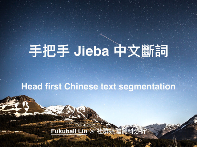 2. 好,首先跟各位介紹一下我自己,我是林志傑,網路上常用的名字是 Fukuball,所以各位可以用 Fukuball 這個關鍵字找到我。我現在在 KKBOX 工作,之前在 iNDIEVOX 當過技術長、目前也是 CodeTengu 碼天狗技術週刊作者群之一,我使用 PHP 及 Python,最近對機器學習很有興趣,空閒時開發了著名的中文斷詞程式 Jieba 的 PHP 版本,所以對中文斷詞有一些研究,今天會把我所知道的都分享給大家,讓大家都有收穫。