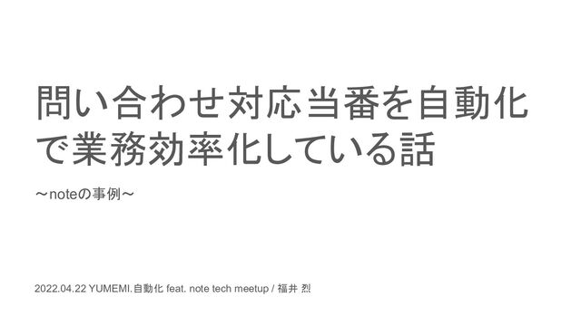 問い合わせ対応当番を自動化 で業務効率化している話 〜noteの事例〜 2022.04.22 YUMEMI.自動化 feat. note tech meetup /