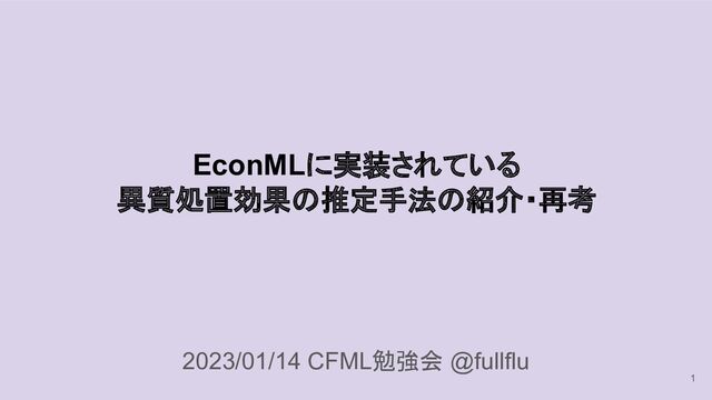 https://speakerdeck.com/fullflu/heterogeneous-treatment-effect-estimation-using-econml-double-machine-learning-doubly-robust-learning-and-meta-learners