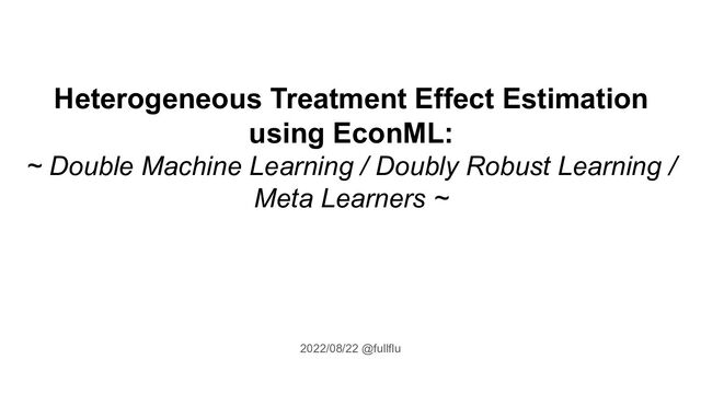 因果推論でよくやるテク)によって実施する ◦ X, W, TからYを予測する任意のモデルを作成し、処置 tにおける予測値を gt(Xi, Wi) とする(S-Learnerと類似) ◦ X, Wから処置を予測するモデルを作成し、処置 tをとる確率を pt(Xi, Wi) とする ◦ i番目のデータが処置 tのもとでとるであろう outcomeを以下のように予測する (Doubly Robust) • 2段階目でfinal modelを作成 ◦ 処置tごとに、 を Xi に回帰するモデルを作成することで、 CATEである τ(x, 0, t) を直接推定 ◦ 2段階目のモデル作成時に利用する推定手法を制限する(線形回帰、あるいは Honest Forest を使ったノンパラ回帰)ことで、 推定量の漸近正規性や信頼区間の有効性を保証できる ✅ MetaLearnersで諦めていた、Wがある場合や信頼区間を構築したい場合も扱えるように ❌ 連続の処置変数は扱えない。特定の処置確率が小さい (X,W) の領域がある場合は分散が大きくなる