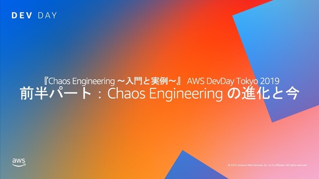 この資料は AWS DevDay Tokyo 2019 の『Chaos Engineering ~入門と実例~ 』セッションの前半パート(=入門)のみを抜粋しています。後半パート(=実例)も読みたい方は以下をどうぞ