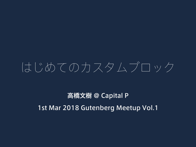GutenbergミートアップVol.1の発表資料です。WordPressの次世代エディタGutenbergでカスタムブロックを作ってみます。