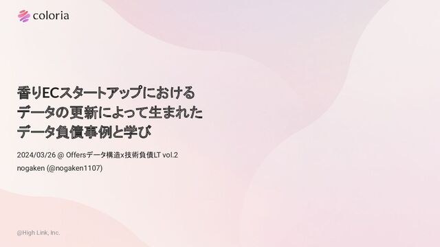@High Link, Inc. 香りECスタートアップにおける データの更新によって生まれた データ負債事例と学び 2024/03/26 @ Offersデータ構造x技術負債LT vol.2