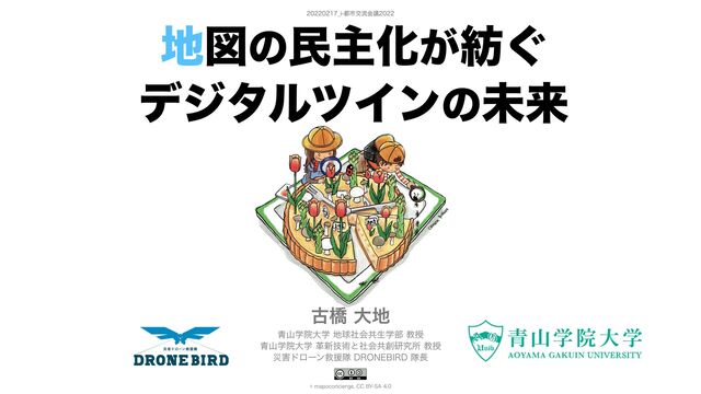 「地図の民主化が紡ぐデジタルツインの未来」 i-都市交流会議2022 古橋講演資料 https://www.chisou.go.jp/tiiki/toshisaisei/itoshisaisei/index.html