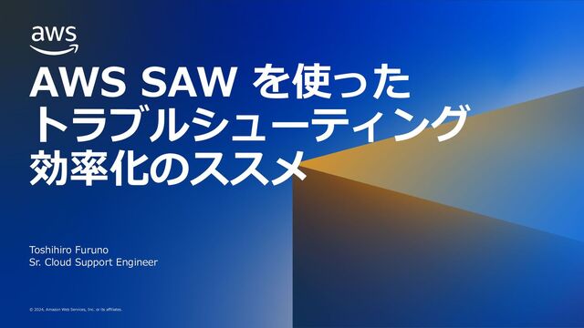 本プレゼンでは「トラブルシューティング」にフォーカスし、AWS SAW の概要や利用ユースケースなど AWS SAW を使ったトラブルシューティングの効率化についてご説明させて頂き、AWS SAW を使ってみようと思っていただければ幸いです