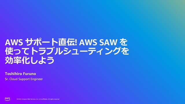 2024年6月20日および21日に開催された AWS Summit Japan 2024 にて6月21日 14:50-15:05 の時間のミニステージ D にて発表させて頂いた「AWS サポート直伝! AWS SAW を使ってトラブルシューティングを効率化しよう」の発表資料です