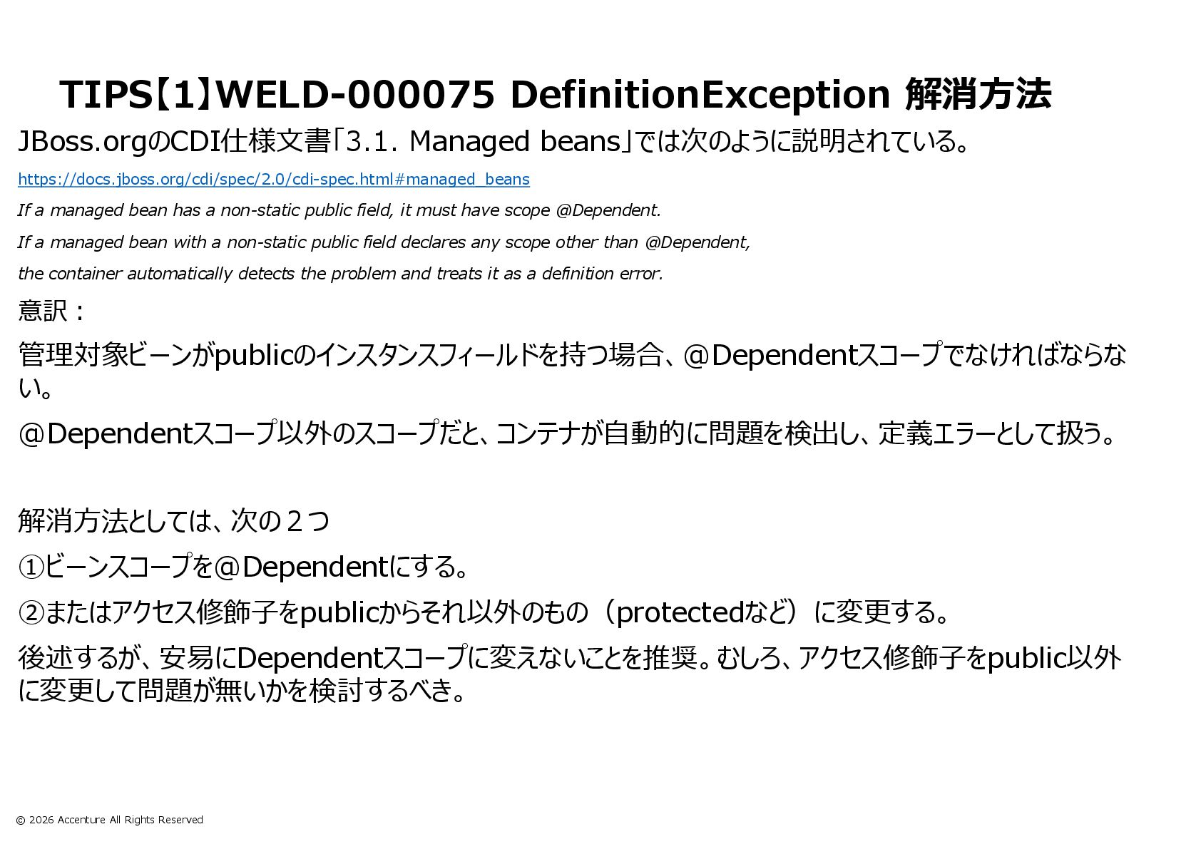 日本Jakarta EE & MicroProfile ユーザーグループ 第1回勉強会 CDIの誤解しがちな仕様とその対処TIPSスライド