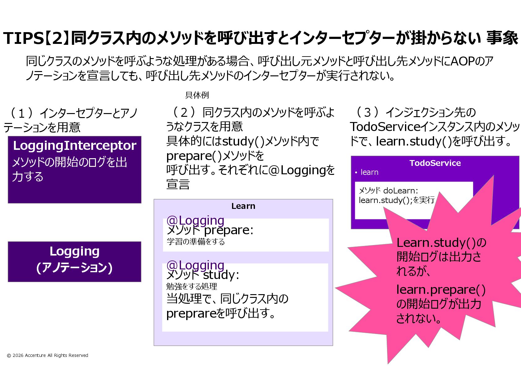 TIPS【2】同クラス内のメソッドを呼び出すとインターセプターが掛からない