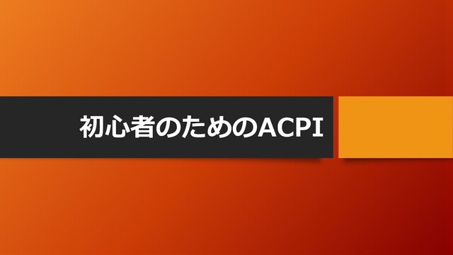 defined, and the role of OEM-provided definition blocks in that architecture is discussed. 2. The concept of the ACPI Namespace is discussed. 「ACPI system description table」と「ACPI Namespace」の2つ がトピックであると述べられています。そして、この2つの要素が ACPIを使ったプログラミングに必須の要素となります。 ※以後、この文書では、ACPI system description tableを「ACPIテーブル」と記載します。また、ACPI Namespaceを「ACPI名前空間」と記載します。