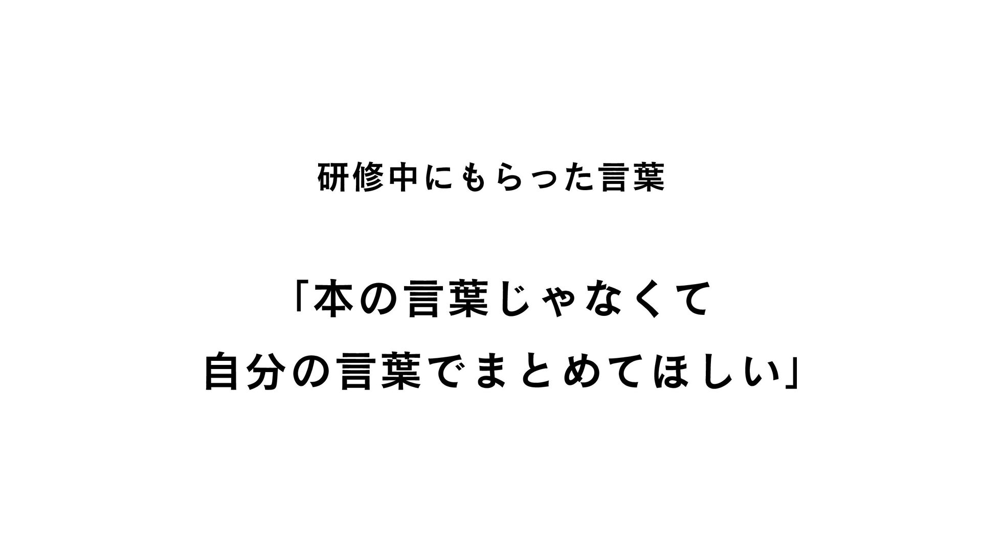 研修中にもらった言葉 「本の言葉じゃなくて 自分の言葉でまとめてほしい」
