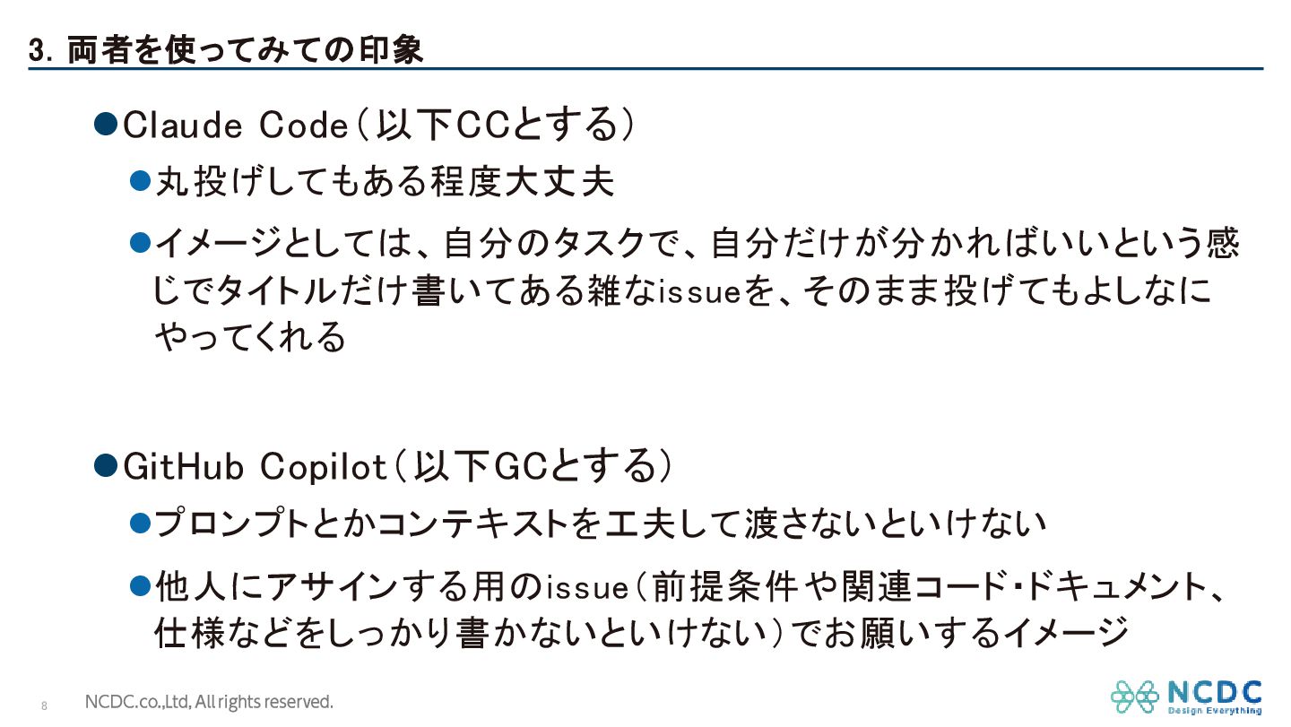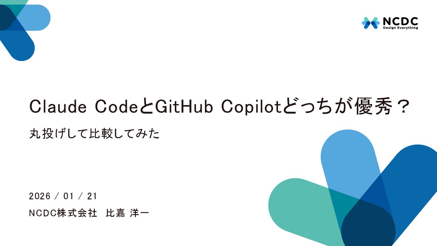 Claude CodeとGitHub Copilotどっちが優秀? NCDC株式会社 比嘉 洋一 2026 / 01 /