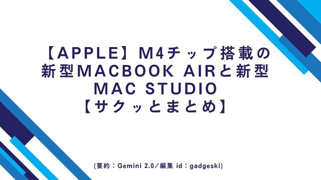 (要約:Gemini 2.0/編集 id:gadgeski) 【APPLE】M4チップ搭載の 新型MACBOOK AI Rと新型 MAC STUDI O