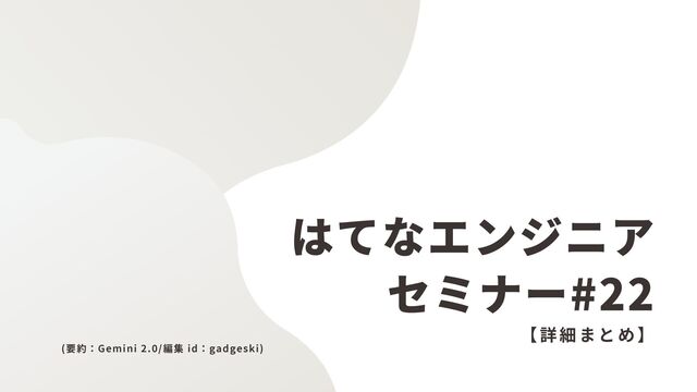 はてなエンジニア 【詳細まとめ】 (要約:Gemini 2.0/編集 id:gadgeski) セミナー#22