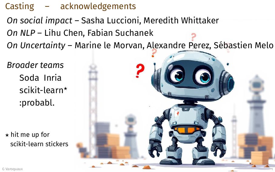 Whittaker On NLP – Lihu Chen, Fabian Suchanek On Uncertainty – Marine le Morvan, Alexandre Perez, S´ ebastien Melo Broader teams Soda Inria scikit-learn⋆ :probabl. ⋆ hit me up for scikit-learn stickers G Varoquaux 1