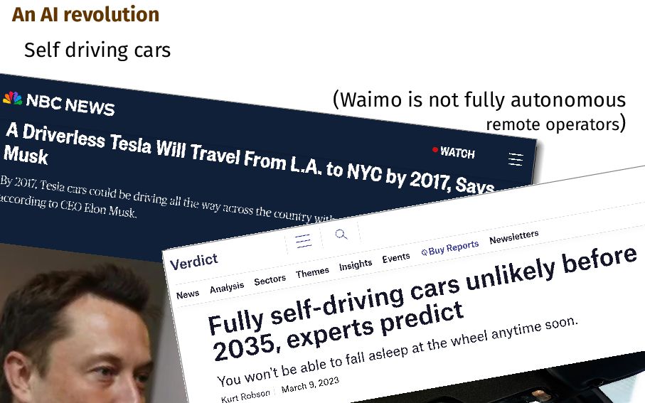 3. An AI revolution Self driving cars (Waimo is not fully