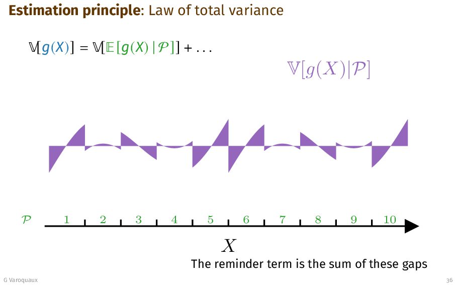 P]] + . . . X P V[g(X)|P] 1 2 3 4 5 6 7 8 9 10 - The reminder term is the sum of these gaps G Varoquaux 36