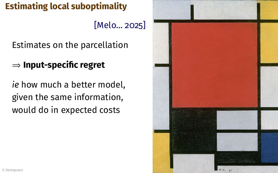 Input-specific regret ie how much a better model, given the same information, would do in expected costs G Varoquaux 42