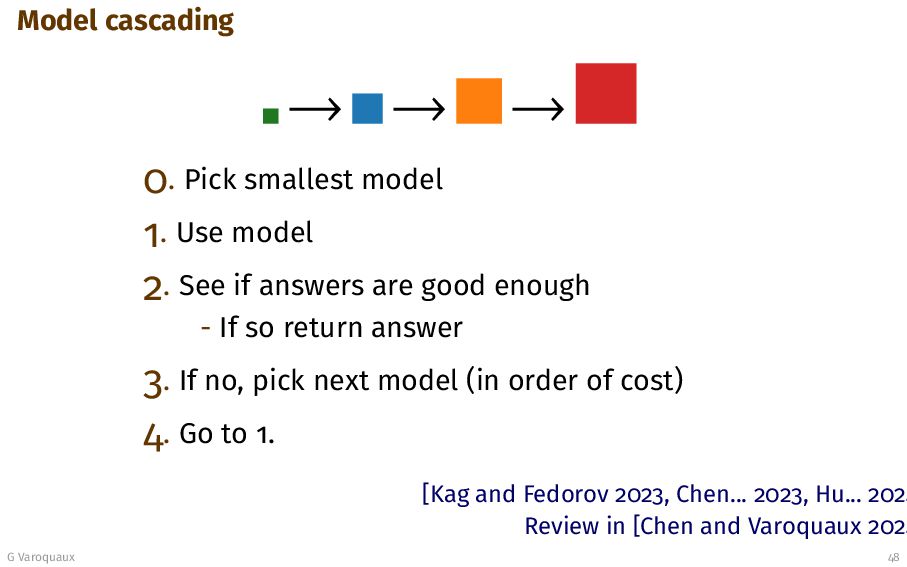 Varoquaux 47 Calling the smallest possible model Decreases inference cost Model routing Model cascading
