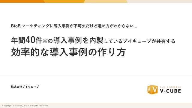 株式会社ブイキューブは、2020年に年間40件もの導入事例を内製しました。効率的に導入事例を作るにはどうしたらよいのか、当社の取り組みをご紹介します。