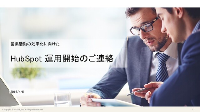 Marketing Automation の運用定着には、マーケティング活動から創出された見込客からの案件化、受注までの記録されていることが不可欠です。案件情報を記録してもらうためには、営業パーソンの協力が不可欠です。この資料は、株式会社ブイキューブで2016年4月にHubSpotの運用を開始したタイミングで、営業パーソン向けの説明会で利用した資料です。なぜ、HubSpotを利用するのか、営業活動にとってどのような変化があるのか、期待する成果やメリットを説明しています。