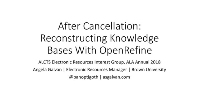 15 minutes but you can send me your questions at: [email protected] • Full steps and JSON available at asgalvan.com following #alaac18 • Cassie Schmitt for this post on dates in OpenRefine: https://icantiemyownshoes.wordpress.com/2014/04/24/clean-up- dates-and-openrefine/ • LITA/PLA AvramCamp for supporting my attendance.